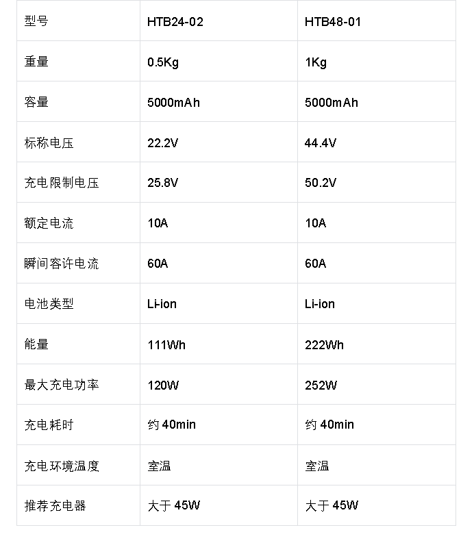 | HTB48-01 | 1kg | 5000mAh | 22.2V | 50.2V |